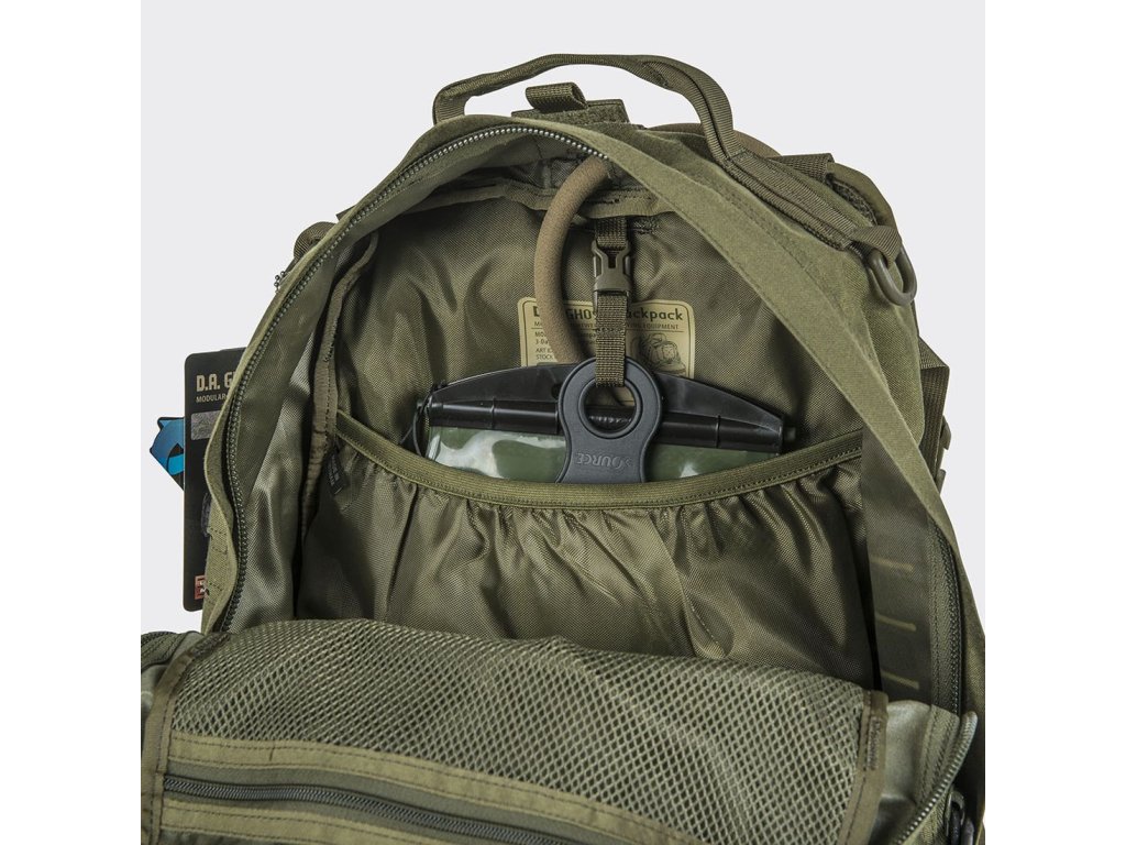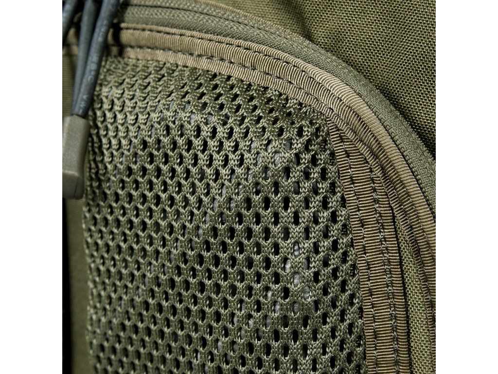 - bederní odnímatelný pás se zapínáním na rychlosponu lze od batohu snadno oddělit a lze jej nosit samostatně jako taktický opasek. Z vnější strany je bederní pás vybavena laserem řezaným Molle/Pals systémem pro dodatečně upevnění dalších kapes, sumek nebo lékarničky, k badernímu pásu je dodáváno i nosné řemení