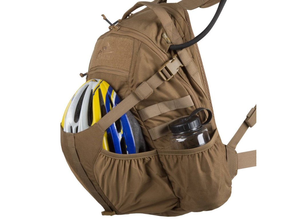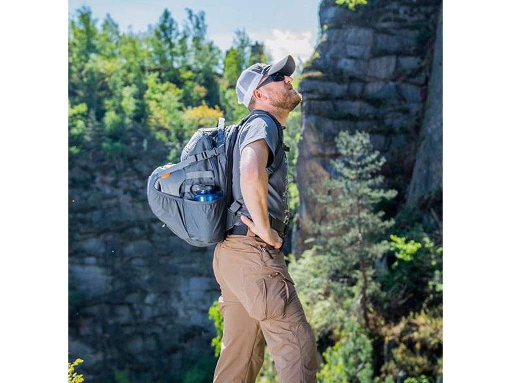 Helikon-Tex® batoh Raider® Cordura® je 20l pokročilý batoh s celou škálou využití. Můžete ho používat pro každodenní nošení tedy jako EDC batoh, nosit se dá klidně na krátké tůry a nebo se dá využít jako taktický batoh. Přední hlavní komora obsahuje síťovanou kapsu na YKK® zdrhovadlo, ve spodní části batohu pak vzadu otevřenou elastickou kapsu s horním přístupem, kterou lze využít na uložení hydratačního vaku. Nad touto kapsou se nachází vnitřní Velcro panel pro upevnění dalších libovolných přihrádek či organizérů. Zadní hlavní komora batohu obsahuje organizér. Obě hlavní komory jsou osazené YKK® zdrhovadly s poutkem pro usnadnění otevírání s rukavice. Batoh je dále vybaven přední vnější polstrovanou kapsou uzavíratelnou na YKK® zdrhovadlo, která se hodí pro přepravu křehkých předmětů. Dvě elastické boční kapsy s pružným lemem po obou bocích batohu můžete využít pro umístění lahví nebo termosek. Ve spodní kapse na YKK® zdrhovadlo se nachází nepromnokavý povlak na batoh. Na přední straně batohu a na bocích se nachází Molle/Pals vazba pro upevnění různých sumek nebo kapes. Batoh je vybaven odepínací bobrovkou pod kterou se dá přepravovat helma nebo klidně i větší bunda. Bobrovka je zajištěná dvěma nastavitelnými popruhy s rychlosponou a lze ji nastavit přesně na požadovanou velikost nebo zcela složit do minimálních rozměrů. Bohatou výbavu batohu doplňují boční kompresní popruhy a D-kroužky na ramenních popruzích.