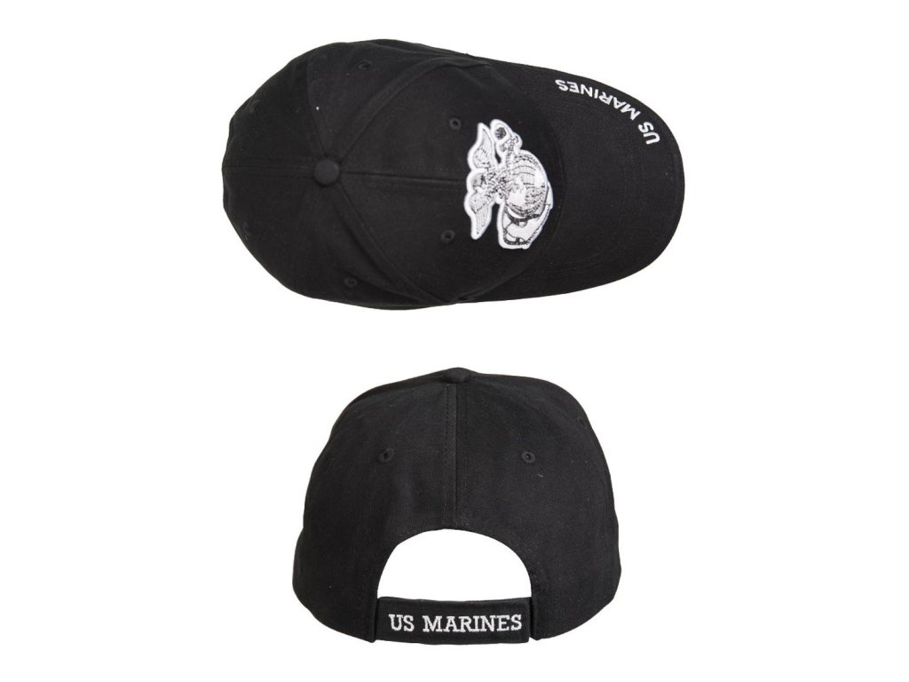 Kvalitní baseball čepice s logem US MARINES (USMC) vepředu, na kšiltu a vzadu na pásku regulace velikosti.