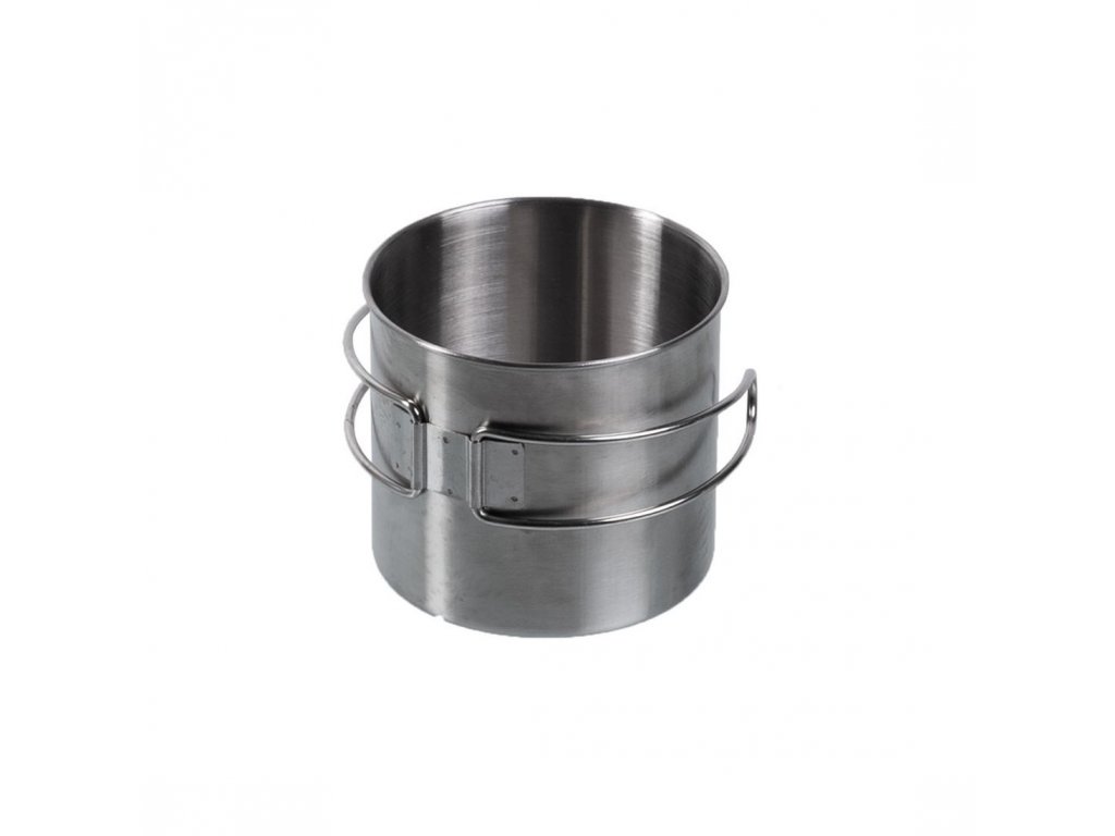 Jednoplášťový nerezový hrnek se sklopnými oušky o obsahu 600 ml.