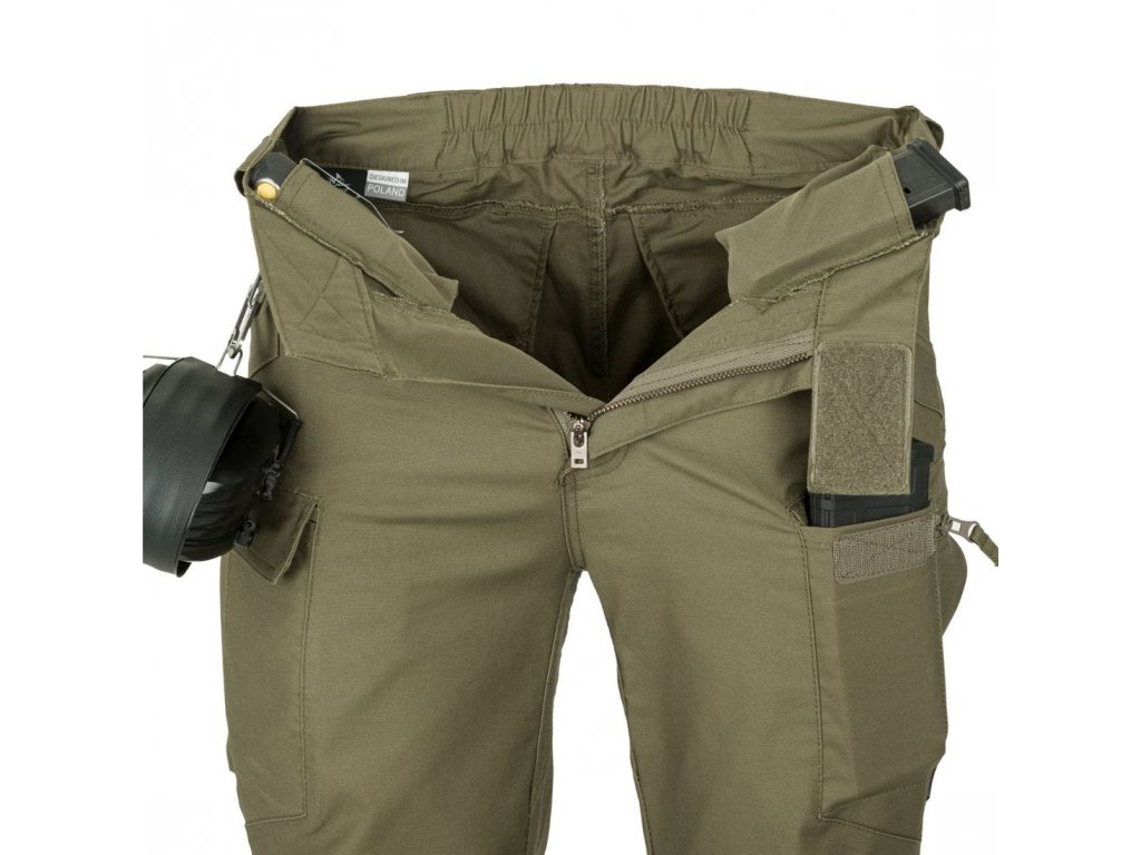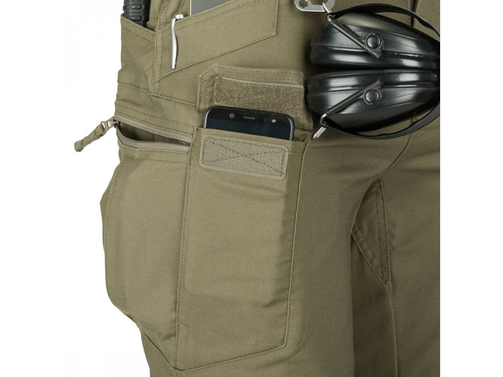 Kalhoty Helikon-Tex® Urban Tactical Pants® patří mezi kultovní produkty této populární značky. Střih kalhot a rozmístění prostorných kapes dává kalhotám anonymní civilní vzhled, zachovávají si však plnou funkčnost bojových a taktických kalhot. Elastický pás na Velcro umožňuje snadné nastavení obvodu pasu. Široká poutka na opasek umožňují nošení opasku až do šířky 50 mm, můžete tak nosit všechny taktické opasky od Helikon-Tex® ať už EDC, UTL® nebo Cobra®. Promyšlený anatomický střih kalhot snižuje jejich tendenci sjíždět z pasu i při plné zátěži.