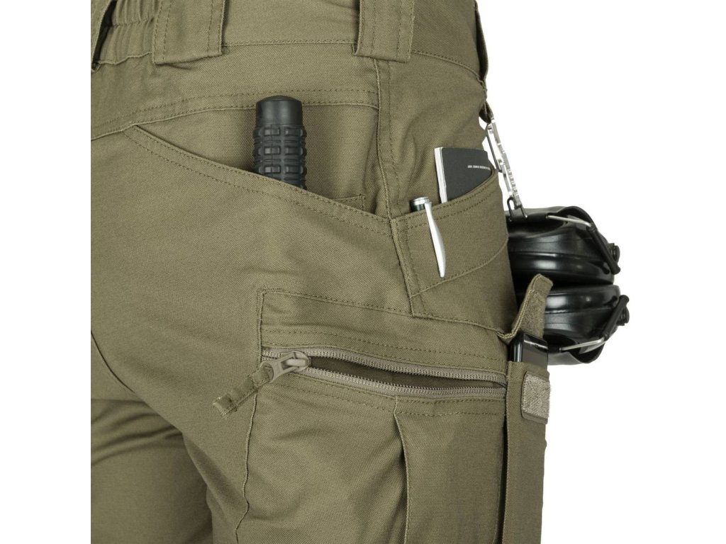 Kalhoty Helikon-Tex® Urban Tactical Pants® patří mezi kultovní produkty této populární značky. Střih kalhot a rozmístění prostorných kapes dává kalhotám anonymní civilní vzhled, zachovávají si však plnou funkčnost bojových a taktických kalhot. Elastický pás na Velcro umožňuje snadné nastavení obvodu pasu. Široká poutka na opasek umožňují nošení opasku až do šířky 50 mm, můžete tak nosit všechny taktické opasky od Helikon-Tex® ať už EDC, UTL® nebo Cobra®. Promyšlený anatomický střih kalhot snižuje jejich tendenci sjíždět z pasu i při plné zátěži.