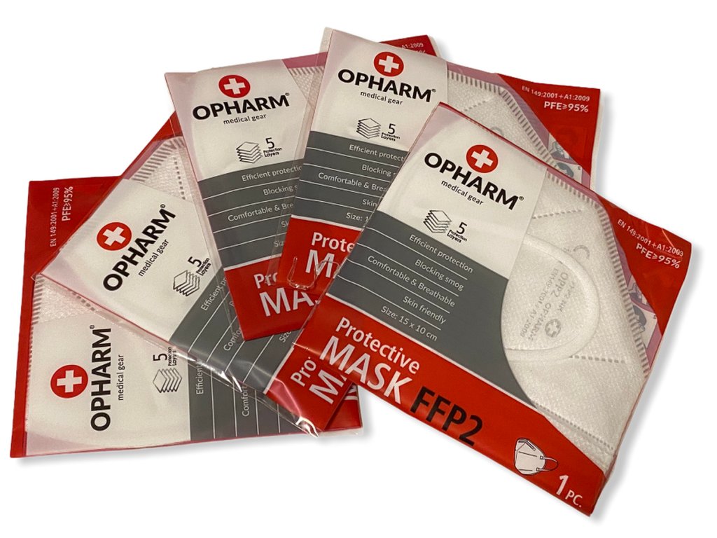 Prémiový Respirátor FFP2, 5 vrstvý, od předního evropského výrobce OPHARM EU s platným evropským certifikátem!!!. Velmi účinná forma ochrany proti COVID-19, bakteriím, virům, prachu, aerosolu a alergenům. Balení 5 ks. Cena za 1ks - 9,90 Kč.