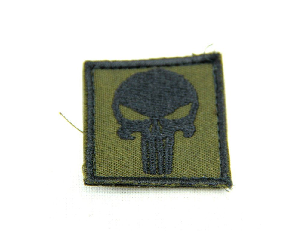 Nášivka Punisher rozměr 4x4 cm zelenočerná na suchý zip