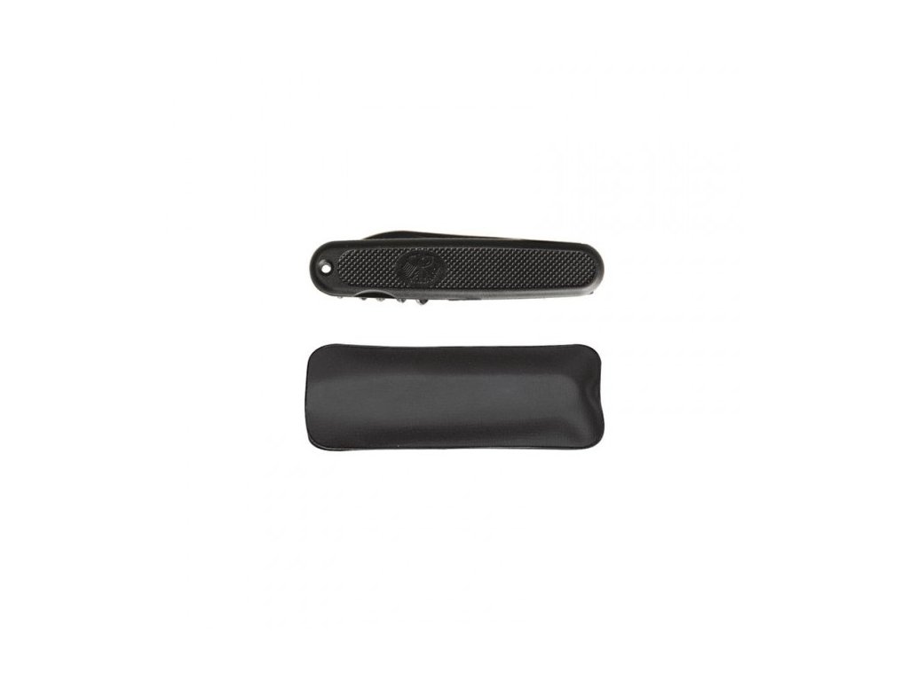 dvě čepele - jedna s hladkým ostřím, druhá s pilkou a otvírákem na konzervy a láhve