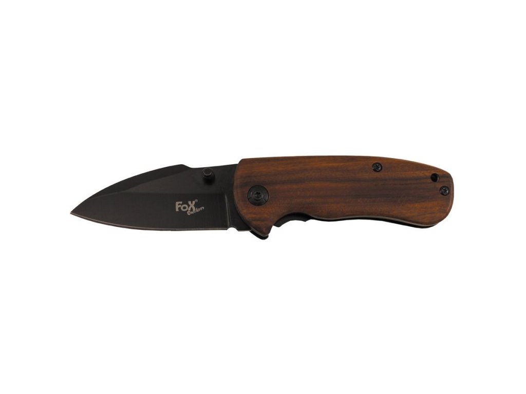 Malý kapesní zavírací nůž s hladkým ostřím a dřevěnou rukojetí.