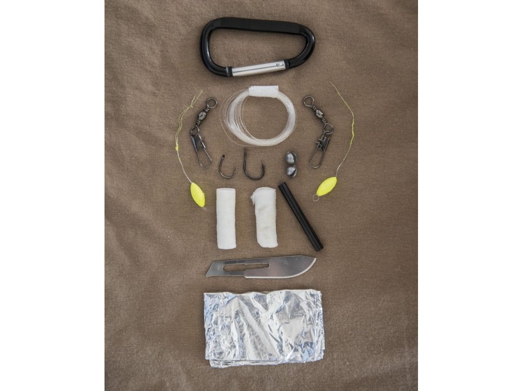 Souprava s příslušenstvím pro přežití v atraktivním a praktickém obalu vytvořeném z padákové šňůry.