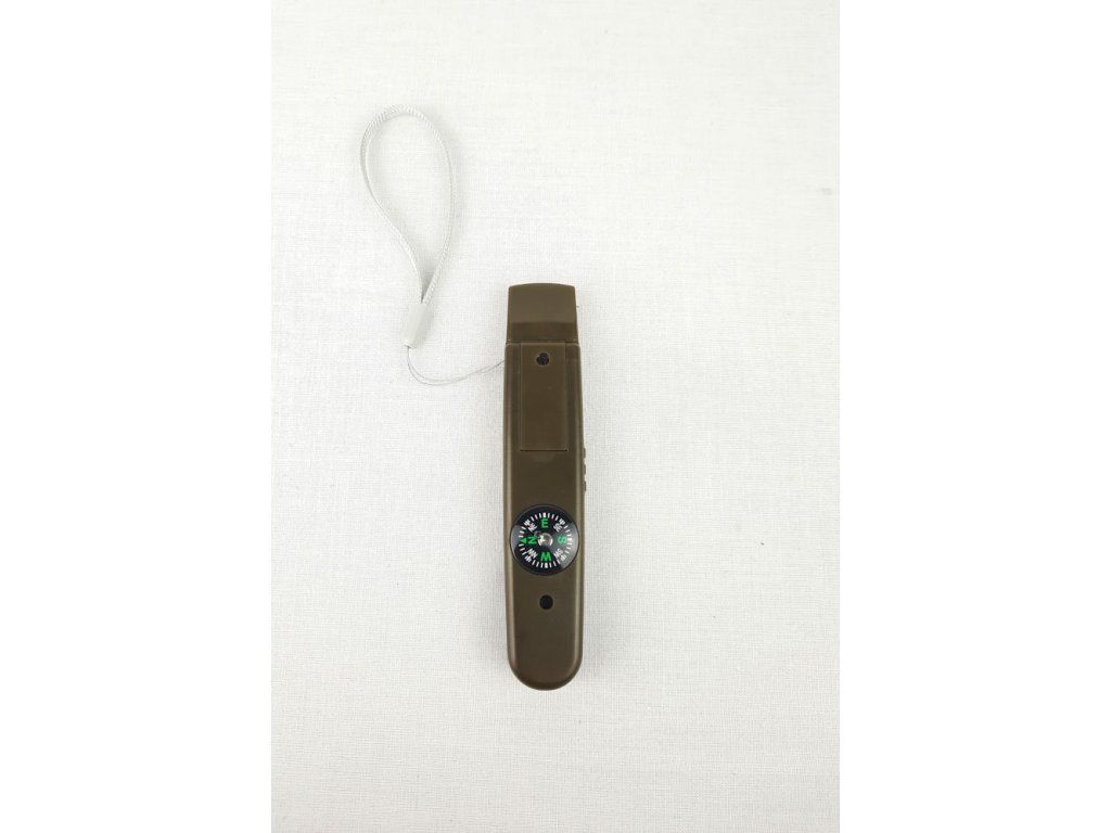 Píšťalka obsahuje: kompas, světlo, laserové ukazovátko, píšťalku, poutko