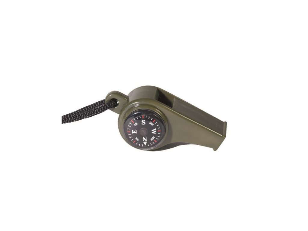 Píšťalka MIL-TEC signální s kompasem a teploměrem Olive