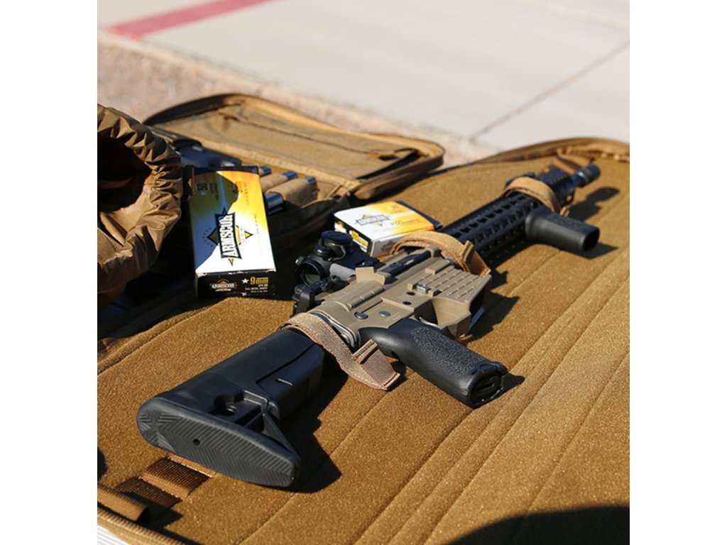 - hlavní kvalitně polstrovaný úložný prostor s MOLLE/PALS vazbou pojme zbraň v celkové délce do 110 cm, tedy běžnou AR 15