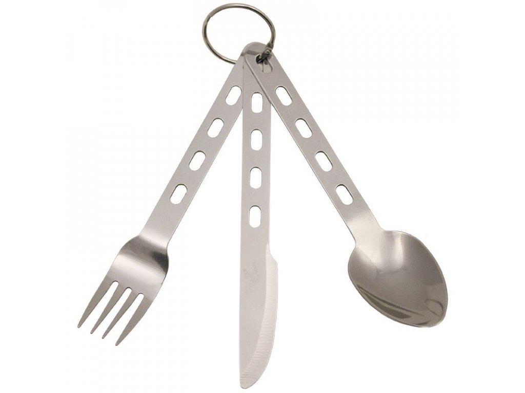 Extra lehký cestovní nerezový příbor s kroužkem.