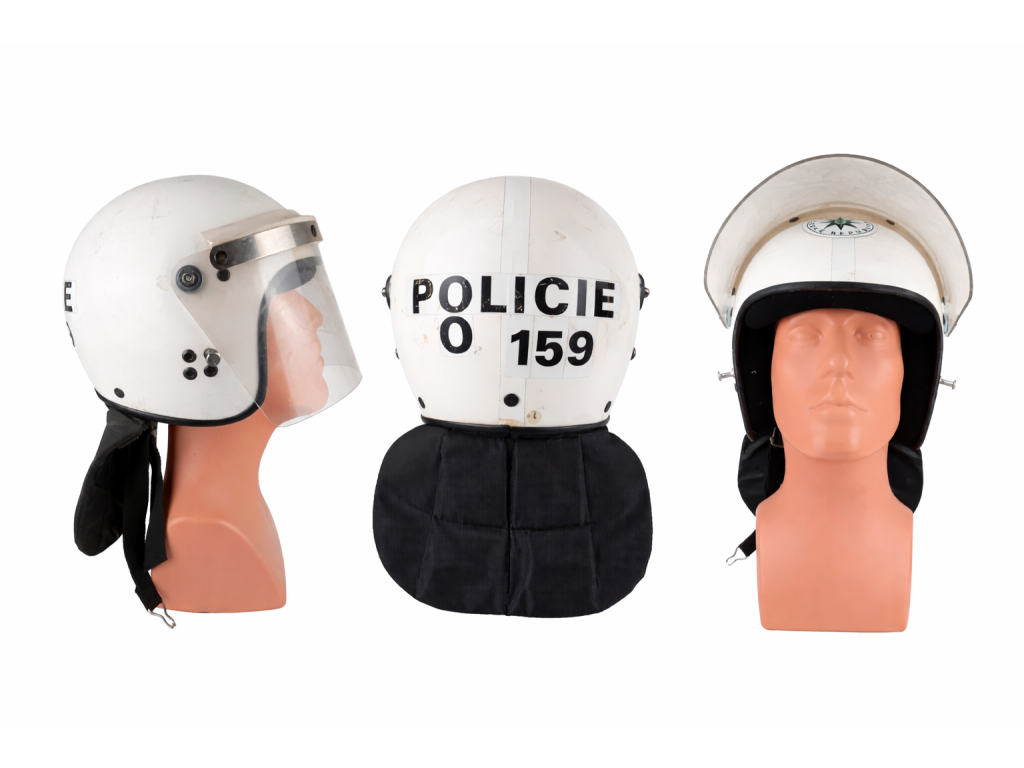 Model byl vyroben v březnu 2000 (3/2000) a odpovídá standardům ochranných přileb používaných u pořádkových jednotek.