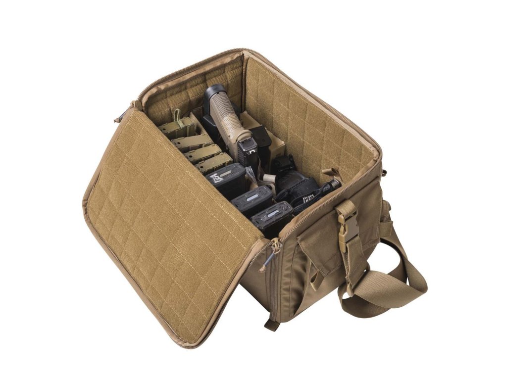 Helikon-Tex® Range Bag® je kompaktní střelecká taška určená k přepravě krátké zbraně, střeliva a dalšího příslušenství na střelnici. Velkou předností Range Bag® je rychlý a snadný přístup k přenášenému obsahu. Spolu s víkem lze pomocí zdrhovadla odklopit celou jednu boční stranu tašky a můžete tak vytvořit jakousi „pracovní stanici“ s rychlým a přehledným přístupem k zásobníkům a střelivu.