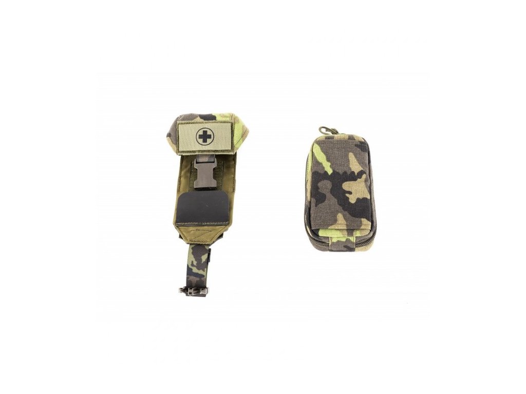 - 2 části - platforma na uchycení na vazbu a vlastní lékárnička, kterou je možno lehce vyjmout a hodit spolubojovníkovi