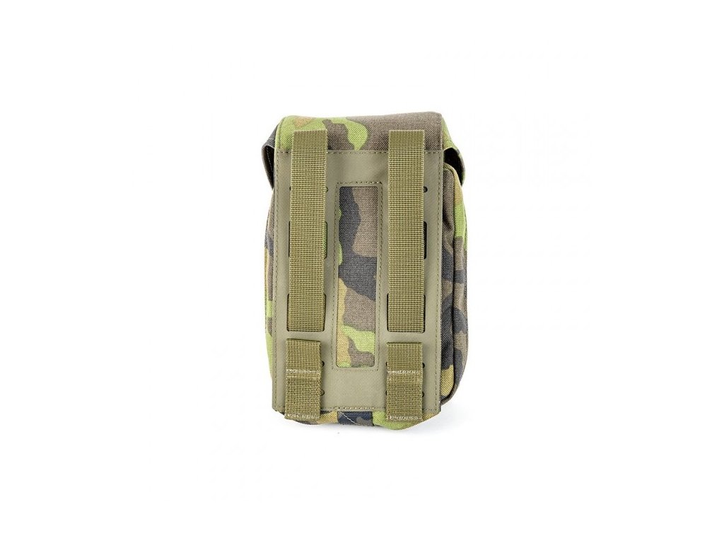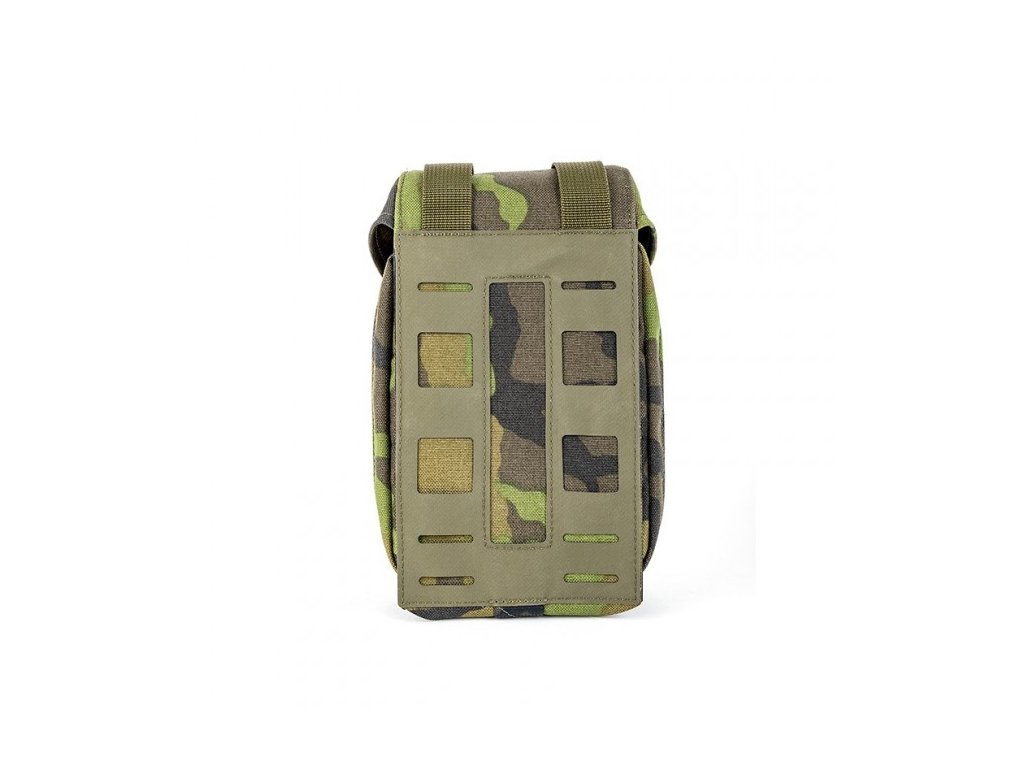 - 2 části - platforma na uchycení na vazbu a vlastní lékárnička, kterou je možno lehce vyjmout a hodit spolubojovníkovi
