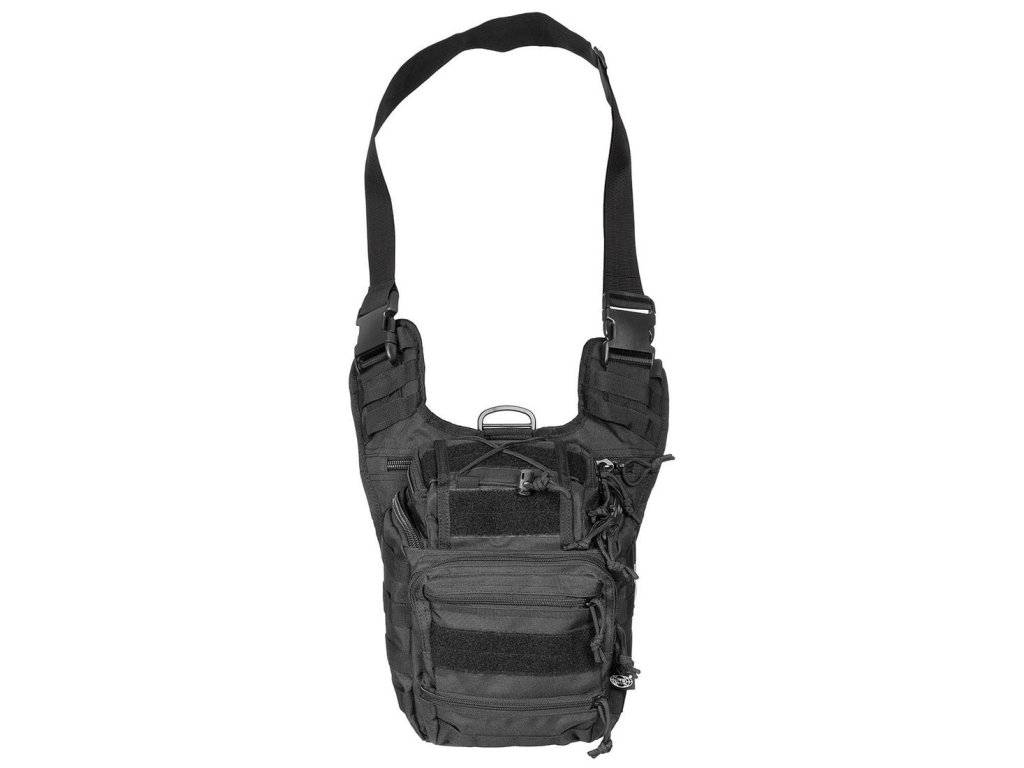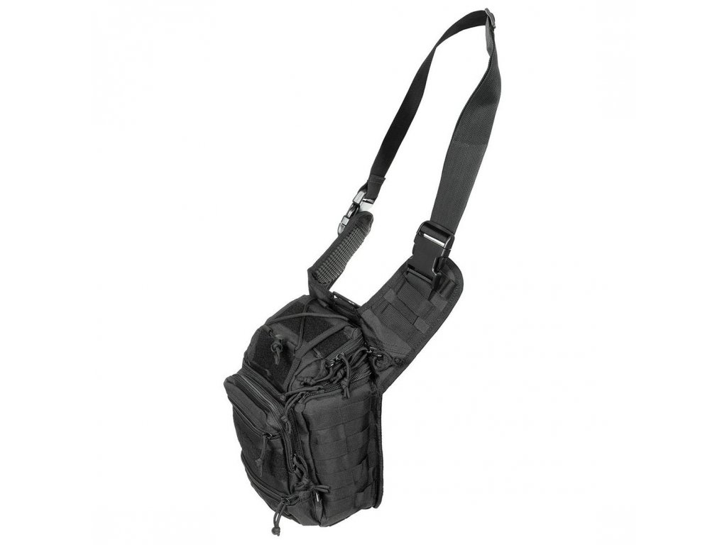 Taktická brašna přes rameno s možností upnutí kolem pasu.