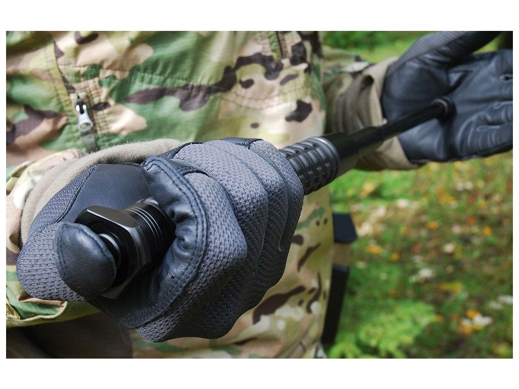 Tento obušek můžete otevřít švihem rukojeti do volného prostoru nebo můžete teleskopické trubky vysunout tahem za špičku, zámkový mechanismus trubky pevně zajistí v otevřeném stavu. Nejlepší na tomto obušku je pak jeho zavírání, kdy stisknutím tlačítka na konci rukojeti a mírným zatlačením na špičku obušku dojde k uvolnění zámkového mechanismu a trubky poté snadno zasunete zpět do rukojeti. Nezáleží na tom, jak silným švihem obušek otevřete – pokaždé ho zavřete pohodlně a bez námahy.