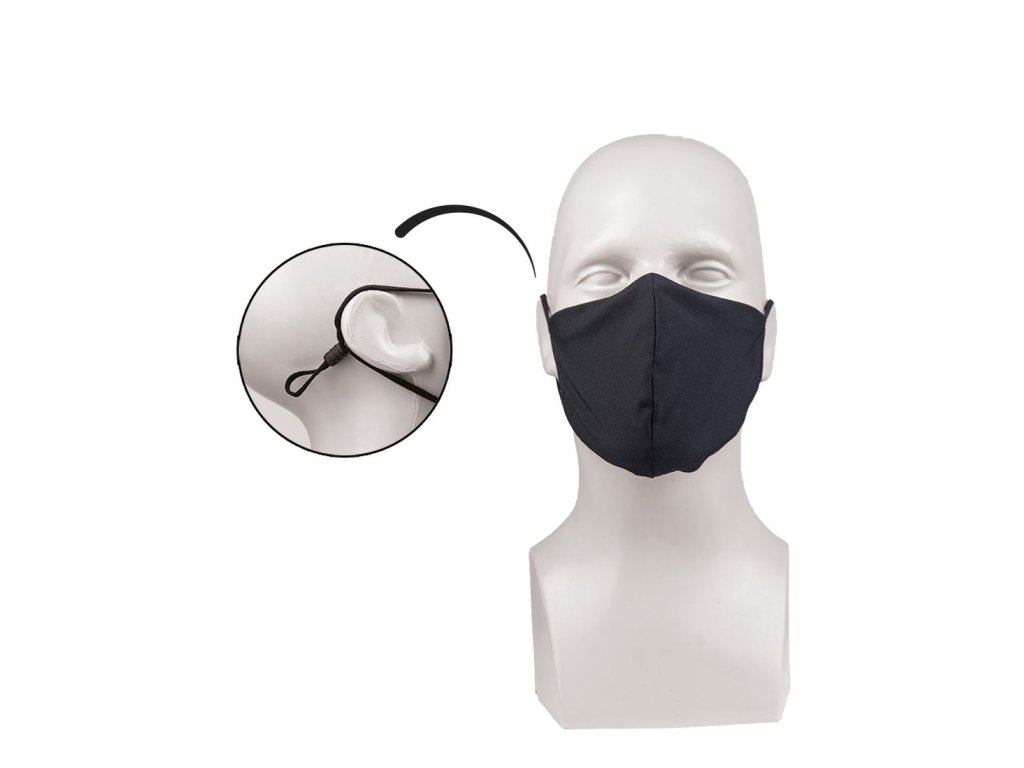 Dvouvrstvá rouška na ústa se stavitelným nastavením za uši pomoci šňůrky s rychlosponou.